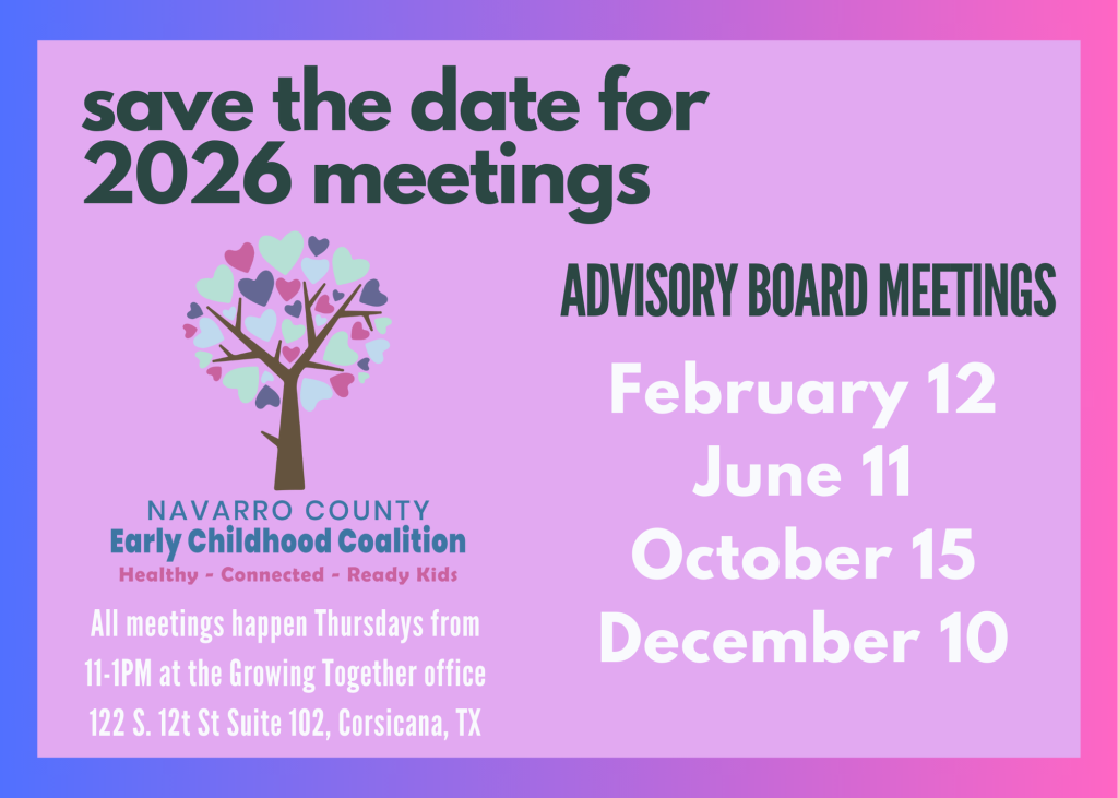 The Navarro County Early Childhood Coalition is sponsored by the Growing Together Program of Presbyterian Children’s Homes and Services